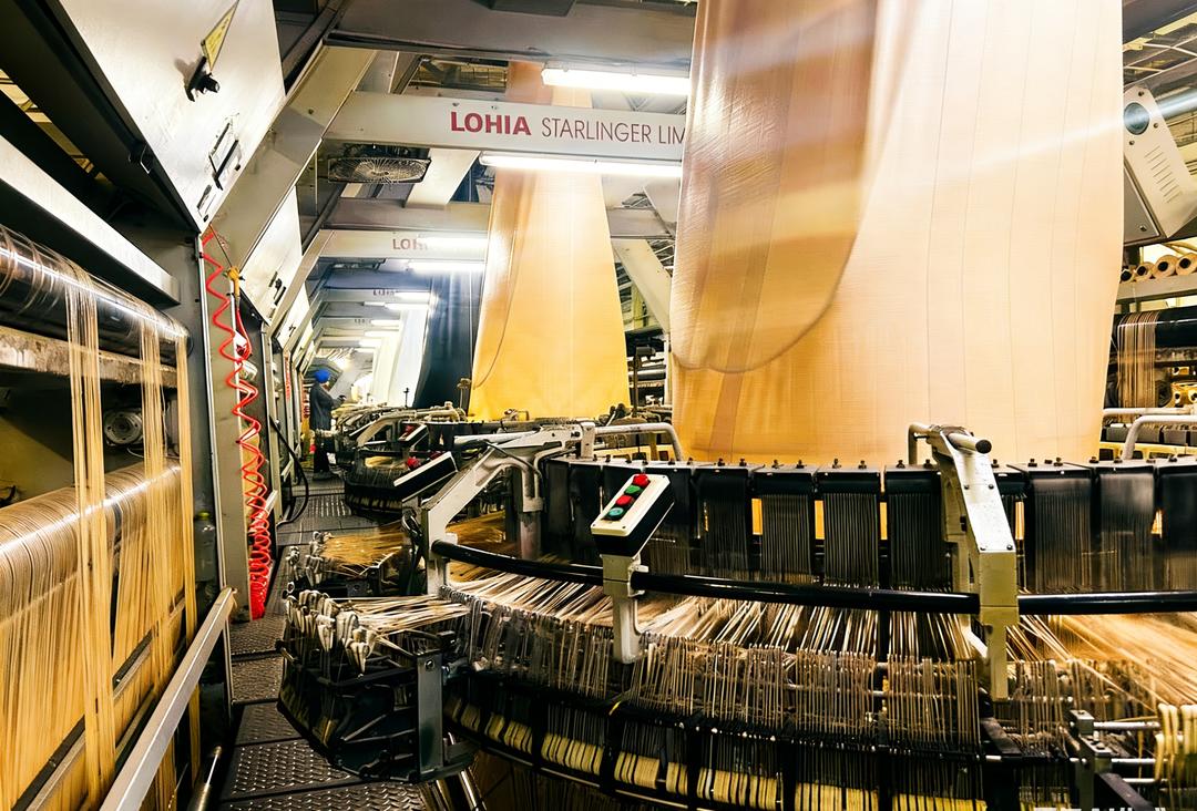 为保障订单按时交付,生产线各个环节“火力全开”:全自动拉丝机每小时投料1吨,圆织机上有序编织着密实的纱网,自动化切割机精准“吐出”不同规格的编织袋……除此之外,企业通过设备联网将生产实况搬上“大屏幕”,实现流程可视、响应提速,工序衔接效率显著提升。