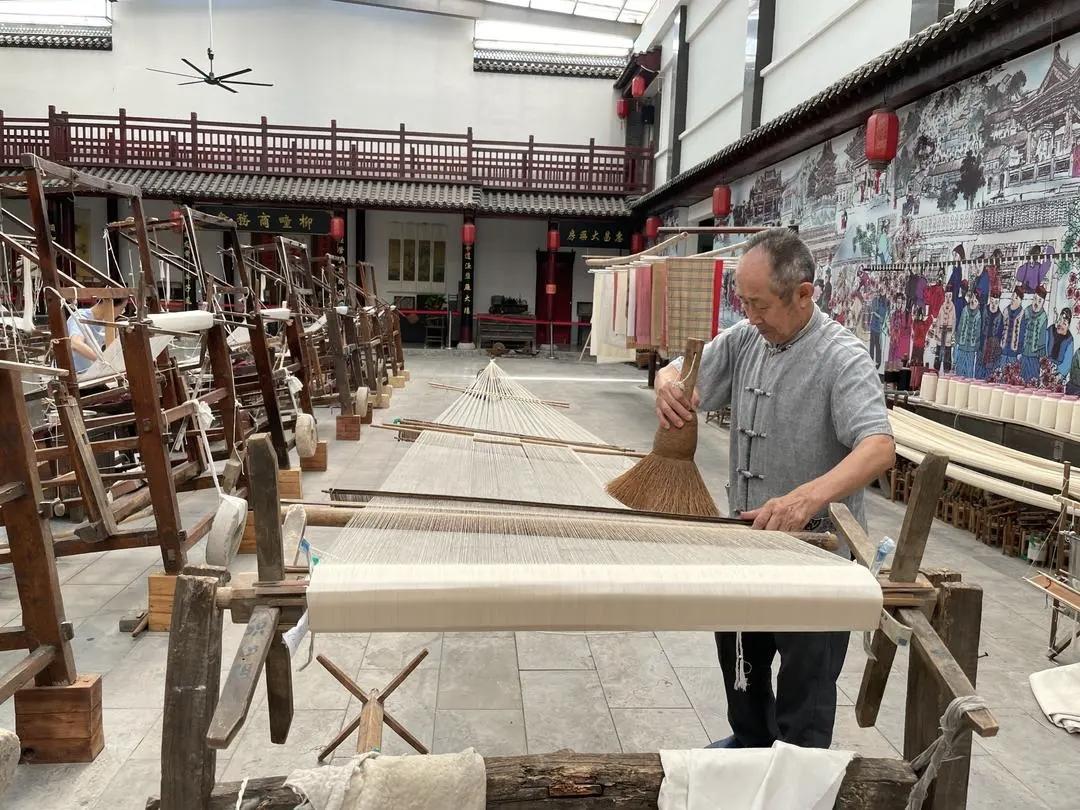 作为“丝绸之乡”的文化地标,拥有近3万件丝绸藏品的柳疃丝绸文化博物馆不仅是丝绸文化的展示窗口,更化身研学课堂,常态化开展丝绸非遗体验活动:博物馆宽敞的前厅里,老手艺人刘元勋及其徒弟们在织机前将扽丝、牵机、络籰、掏缯等十余道复杂工序一一呈现复原,吸引大批学子和游客慕名而来。鲜活的非遗展演有效延长了游客停留时间,带动了丝绸文创产品销售、周边餐饮游玩等消费,成为当地文旅收入的重要增长点,仅博物馆及周边丝绸文旅业态年接待游客就超10万人次,老手艺的展演真正成为激活乡村旅游经济的“金钥匙”。