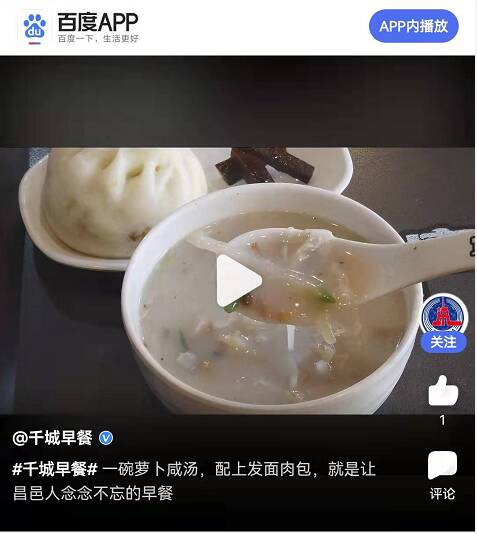 12月14日,由新华社独家约稿,昌邑市融媒体中心新媒体部策划制作的《一碗萝卜咸汤,配上发面肉包,就是让昌邑人念念不忘的早餐》,在新华社客户端、百度APP、好看视频播出。该节目以昌邑人最熟悉的萝卜咸汤、发面肉包两种早餐为切入点,通过精心的策划、细致的采访、精良的制作,展现了昌邑早餐的独特魅力。