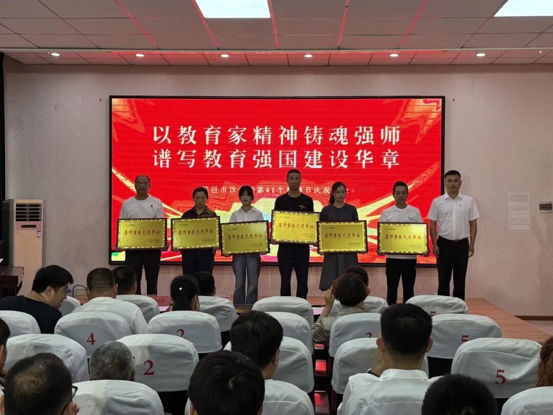 会上,与会领导为尊师重教先进单位、个人,优秀教师、优秀教育工作者、优秀班主任颁奖,优秀代表依次上台作典型发言。