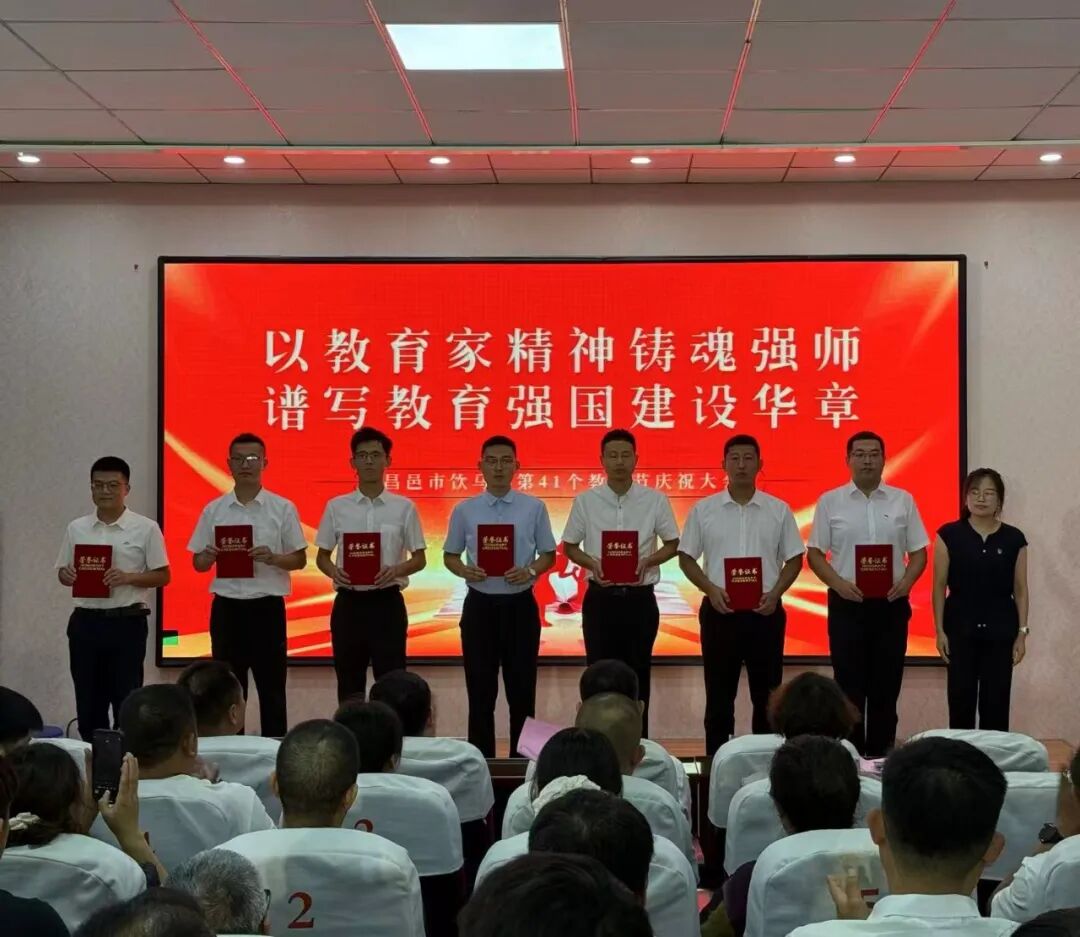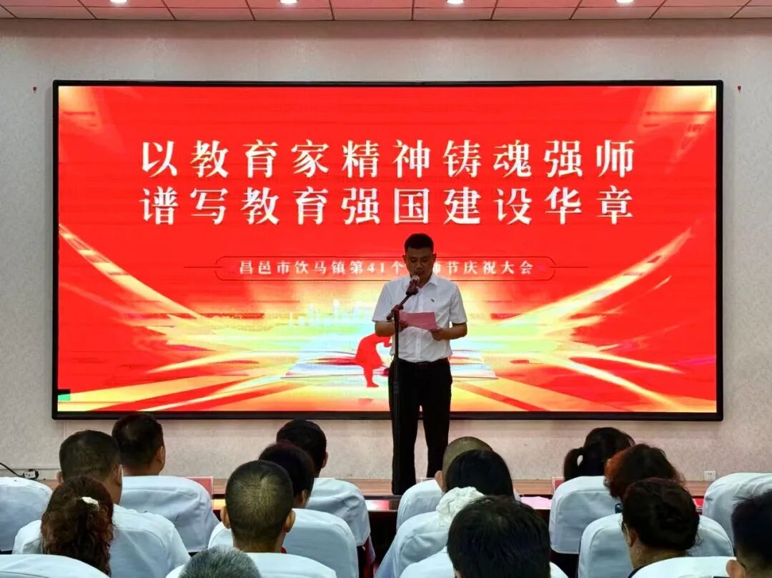 9月6日上午,饮马镇隆重举行第41个教师节庆祝大会,表扬典型,回顾历程,深化认识,汇聚合力,奋力谱写饮马教育高质量发展新篇章。镇党委书记张亭,教体局党组成员、副局长杨文明,镇政府分管负责同志,饮马学校全体工作人员,辖区各学校(幼儿园)主要负责同志及受表扬的先进单位和个人参加会议。